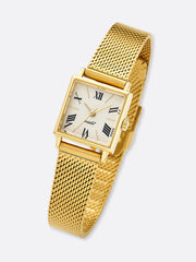 スクエアケースに整然と並ぶローマとバーのインデックスは視認性とデザイン性を引き上げます。立体的に仕上げたスクエア風防は全体にまとまりをもたせ、細く同色の長短秒針が絶妙なエッセンスに。