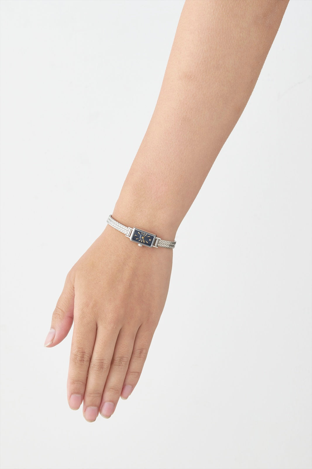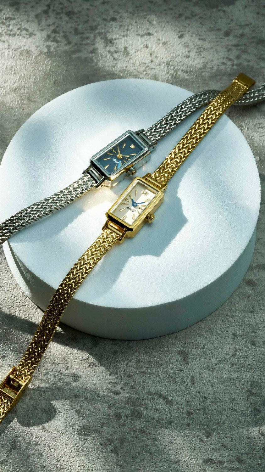 極小ムーブメントの特性を活かし、手元をすっきりと美しく見せるプロポーションを実現しました。