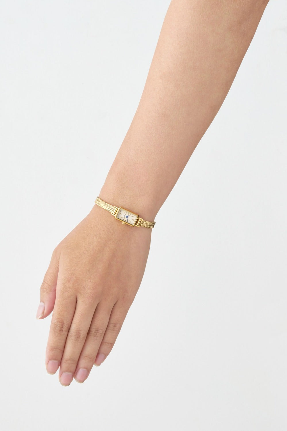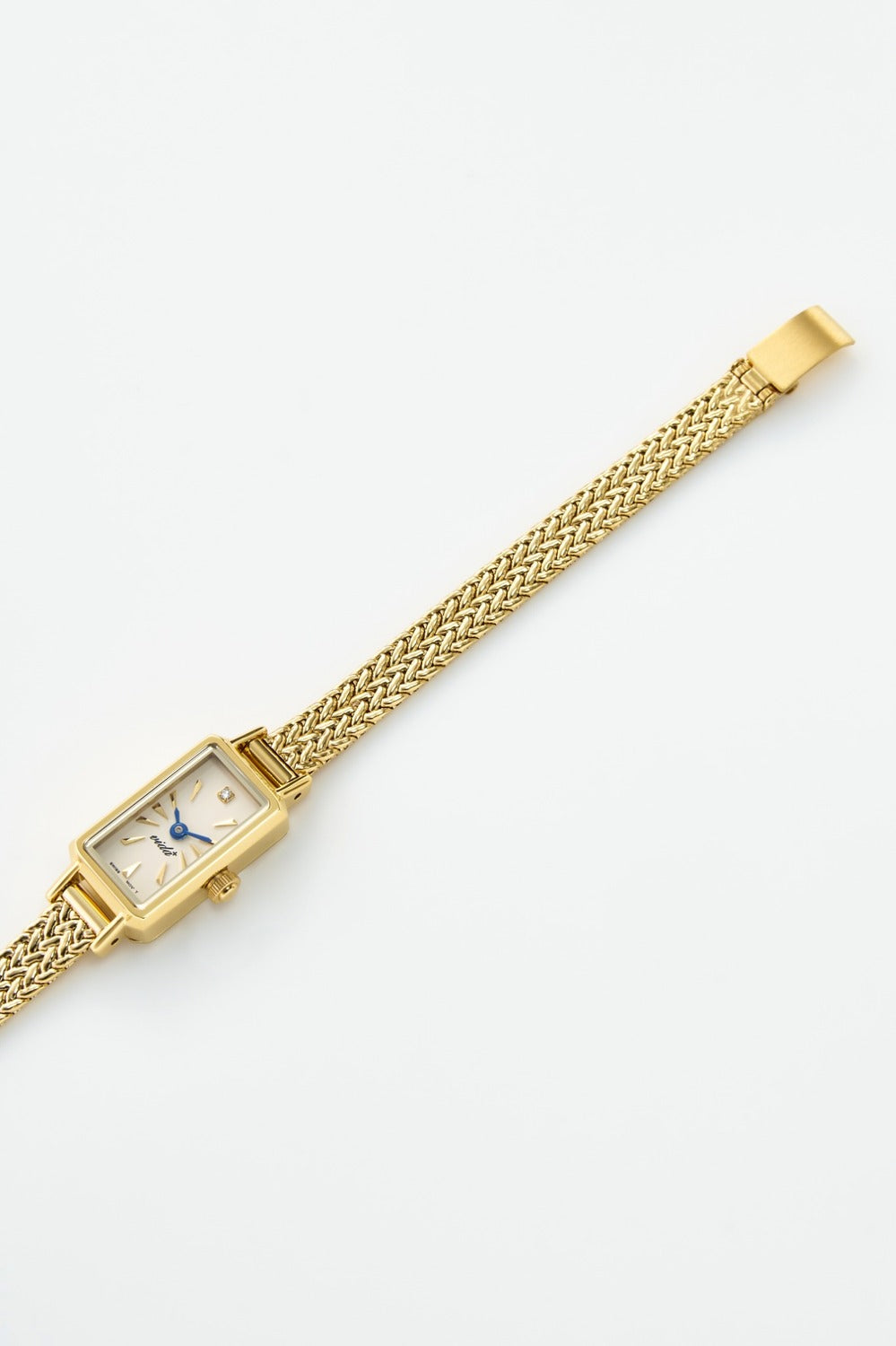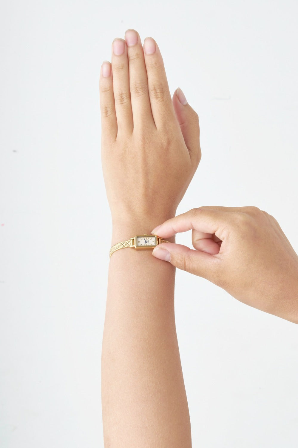 極小ムーブメントの特性を活かし、手元をすっきりと美しく見せるプロポーションを実現しました。